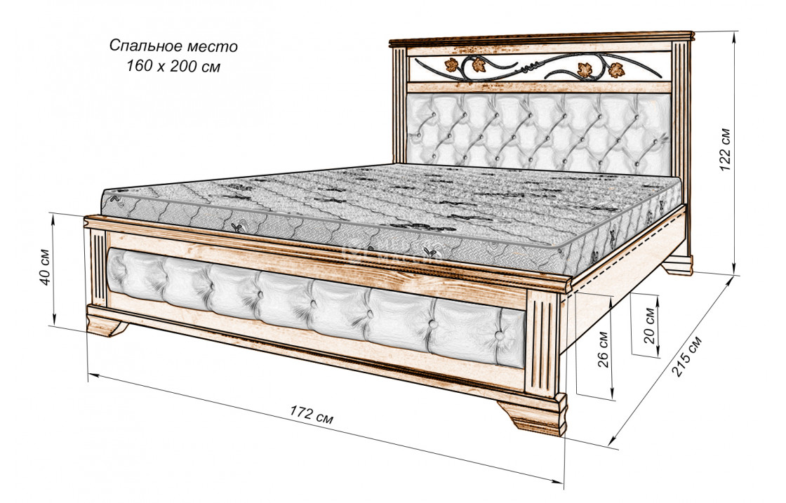 Кровать Лозанна из массива. Осуществляется доставка на дом по Волгограду и Волгоградской области.| Размер | Цена | |